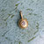 Für diesen Solitär-Anhänger habe ich Reststücke vom 750 Gold, die bei meiner Arbeit anfallen, geschmolzen und die glühende Goldmasse erkalten lassen. Es ist eine freie Arbeit, die ich auf der Holzkohle mache und nicht in einer Form. Das Ergebnis ist jedes Mal ein winziges bisschen anders, aber immer eine leicht organische, etwas abgeflachte, vollmassive Goldhalbkugel. Die im Erkaltungsprozess rau wie eine Mondlandschaft erstarrende Rückseite der Halbkugel glätte ich bewusst nicht. Die Anhängeröse ist ebenfalls aus 750 Gold und schön groß.