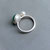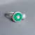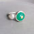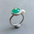 Für diesen facettierten Chrysopras mit etwa 1 cm Durchmesser habe ich in reiner Handarbeit eine Fassung aus Sterlingsilber sowie Feinsilber angefertigt und sie auf eine ebenfalls handgearbeitete, schlanke und angenehm zu tragende Ringschiene mit rundem Querschnitt montiert. Die Ringgröße ist 52,5 bzw. 1,69 cm Innendurchmesser.