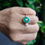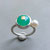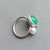 In Handarbeit gestalteter Doppelring mit smaragdgrünem Chrysopras und weißer Zuchtperle.