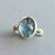 Handgefertigter Feinsilber-Silber-750-Gelbgold-Ring mit einem taubenblauen Turmalin mit einer botanischen Prägung unterlegt.