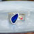 Mit einem australischen Opal in einem geheimnisvollen, dunklen Blau. Die Fotos geben ihn nicht so wieder, wie er tatsächlich erscheint. Dem menschlichen Augen offenbaren sich wesentlich mehr Nuancen, als eine Kamera einfangen kann! Seine Grundfarbe ist marineblau. Im Licht offenbart er ein Schillern in verschiedene Blaunuancen von Violettblau über Royal- und Kobaltblau bis hin zu Knallblau mit Tupfen in Türkis und Smaragdgrün. Gefasst habe ich ihn in eine breite, starkwandige Fassung aus mondhellem Feinsilber, was wunderbar zum kühlen Edelstein passt.