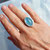 Einen sehr großen Aquamarin habe ich hier als Ringstein gefasst. Ein imposanter Edelstein in einem kühlen Hellblau und ohne nennenswerten Grünanteil. Er ist transluzent und zeigt ein besonders vielfältiges Innenleben. Es gibt seitlich einige kleine dunkle "Sommersprossen" und es gibt Schleier, Bläschen, Cracks und Wirbel, die ihn im Licht eisig glitzern lassen.