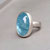 Handgearbeiteter Silberring mit einem himmelblauen 22 ct. Aquamarin-Cabochon.